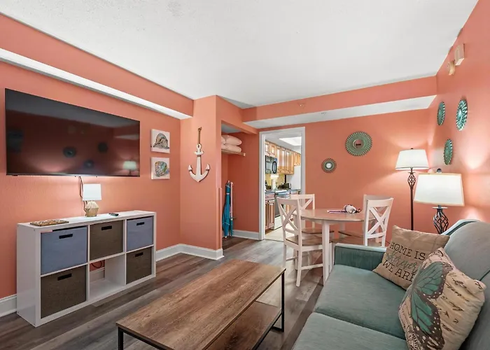 The Freestyle Music Park is 15 minutes by car from the 1-bedroom holiday home, while the Myrtle Beach Convention Center is situated around 10 minutes away by car. Family tourists will enjoy proximity to the seaside Family Kingdom Amusement Park, which is 1.3 km away. Bright & Airy 1 Bedroom Oceanfront Condo! Landmark 844 villa provides easy access to natural wonders such as Chapin Memorial Park (3.5 km) and the sandy parkland "Myrtle Beach State Park" (3.7 km).